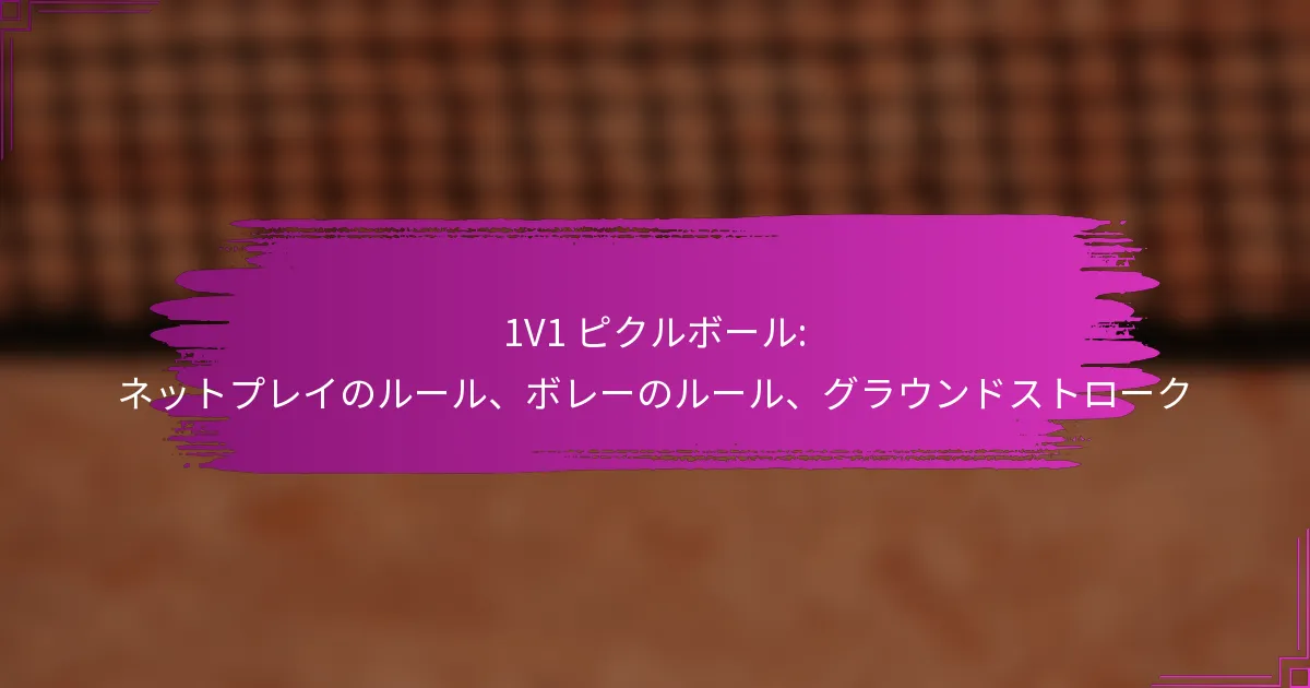 1V1ピクルボールでは、ネットプレイ、ボレー、グラウンドストロークをマスターすることが競技プレイにおいて不可欠です。ネットプレイは、ラリー中のプレイヤーの相互作用を規定する特定の戦略とルールを含み、ボレーにはノーボレーゾーンの理解と適切な技術が必要です。ボールがバウンドした後に行うグラウンドストロークは、ラリーを維持し、ゲームのペースをコントロールするための基本です。