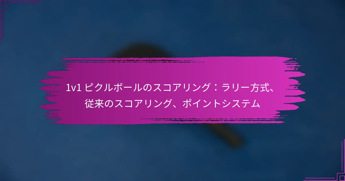1v1ピクルボールのスコアリングは、シングルスの試合中にポイントを追跡するためのさまざまな方法を含んでおり、選手が効果的な戦略を展開し、ゲームの楽しさを高めるために不可欠です。主なスコアリングシステムは、両方の選手がすべてのサーブで得点できるラリースコアリングと、サーブを行う選手のみがポイントを獲得できる従来のスコアリングの2つです。これらのシステムを理解することで、選手はプレイスタイルを適応させ、競争力を最大化できます。